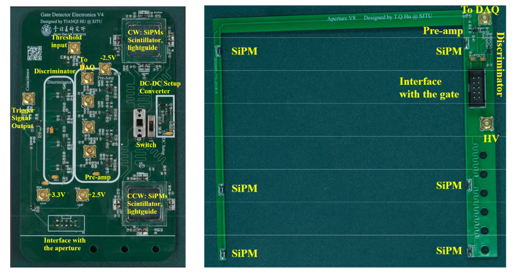 Fig. 3 left: Gate detector PCB board; right: Aperture detector PCB board.