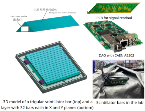 The TDLI Muon Physics group developed the Cosmic-ray Muography System (CMS), which has successfully gone online and started data collection in radiography mode. The system features three tracking layers, each constructed using 1.5 cm-wide triangular scintillator bars read out by SiPMs across an active detection area of approximately 50 cm × 50 cm. Integrated with CAEN’s A5202 front-end electronics, the CMS offers a compact, modular, and high-resolution platform for muon imaging.