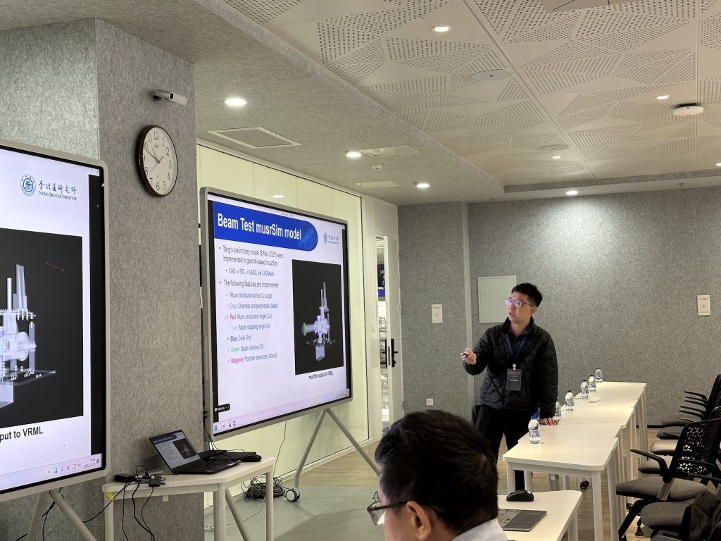 The workshop brought together over thirty distinguished experts and scholars from renowned domestic universities and research institutes, including Fudan University, ShanghaiTech University, the Institute of Modern Physics (IMP-CAS), the Institute of High Energy Physics (IHEP-CAS), and SARI-CAS. Kim Siang served as the meeting convener and delivered the opening remarks. Yusuke and Jun Kai from our group also presented the overview of the SHINE Muon Source project and the beam test preparation at SHINE in 2026.